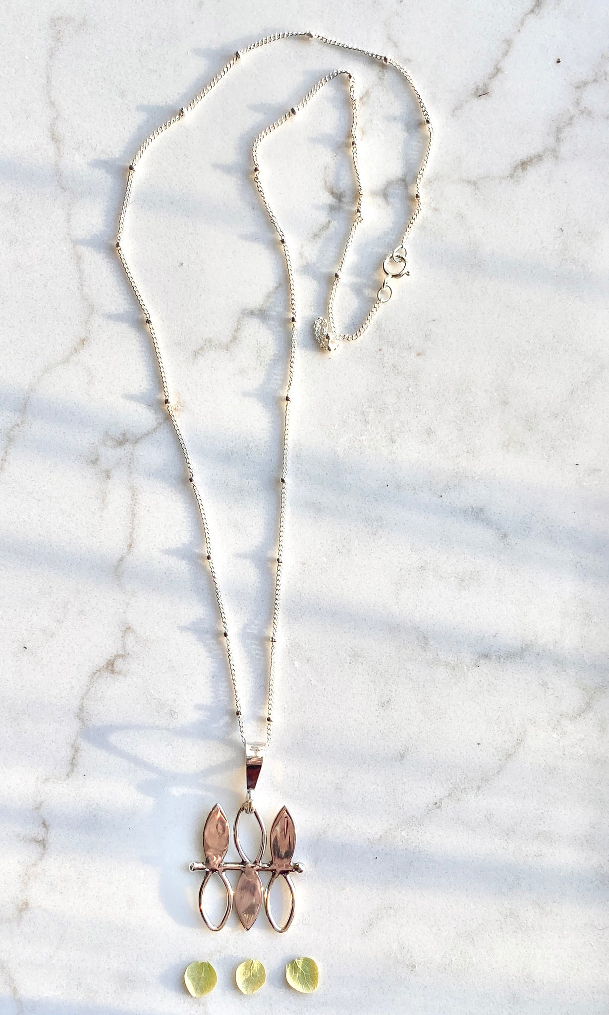 These is such a unique original sterling silver design! I designed it to be modern but folksy too. I placed it on a sterling silver ball satellite chain. I think this would work for any age.
