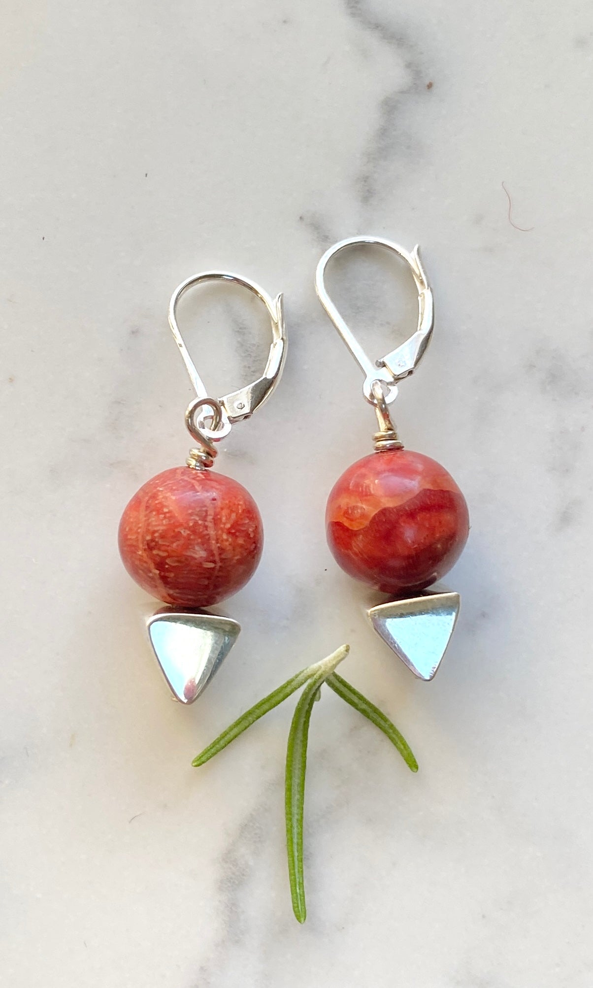 These add the fresh look you are looking for. The red color I would call a tomato red. Lever back earrings keep them in place.
